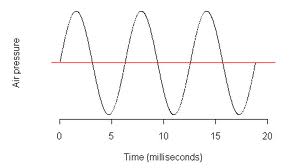 In Fourier analysis, the sine wave is like the fundamental signal. The figure to the left represents a sine wave. Every signal can be expressed as a sum of many sine waves of different amplitudes and phases. Ok now what does that mean? It’s like how we can express any number as a weighted combination of 1 and 2. Consider 17 for example. It can be written as 17 = 7*1 + 5*2. Here 7 and 5 correspond to ‘amplitudes’. I will talk about phase later. There are other ways to express the number (1*1 + 8*2), but in Fourier analysis, there is only one way to decompose a signal. The numbers example is too simple to explain the complexity of Fourier analysis in its entirety, but it captures the gist of what I’m trying to say here.