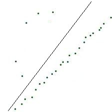 least squaresRANSAC stands for RANdom Sample Consensus. When you ask a computer to deduce a pattern, it will look at all the input data points and come up with a model that will fit all these points well. As seen in the figure, the line passes through all the points. The metric used to see how good the line fits the model is called least squares method. You just compute the perpendicular distance of each point from the line and see which line gives the least error. Nice and simple!